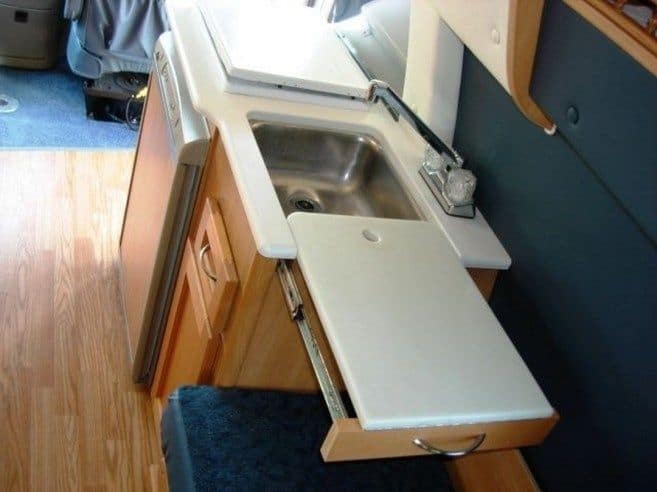 You can never get enough storage space if you are living in a RV or any other motorhome for that matter. In order to use most of your dead space, you’ll need to be a little creative and sneaky. You can achieve this by installing lock and roll portables, organizers attached to your doors, sofa chairs or shelves and hangers, make sure to use every inch of free space possible.